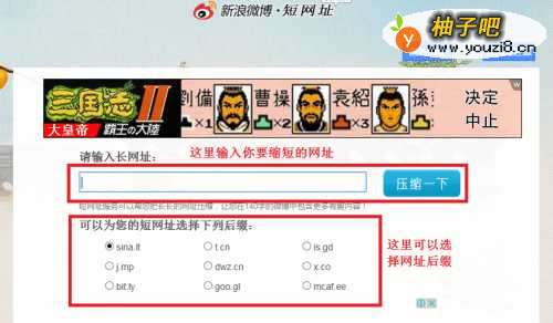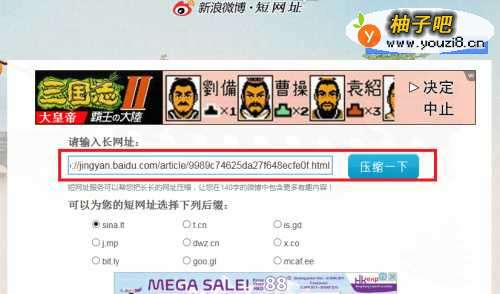 4复制我要缩短的长网址到压缩框内,下面默认的是新浪短网址后缀;