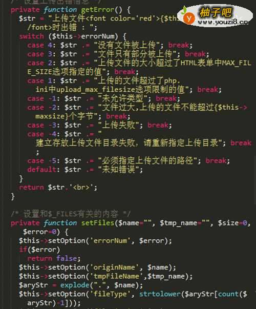 case -2: $str .= "文件过大,上传的文件不能超过{$this->maxsize}个字节"; break;