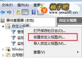 6在“事件查看器”的左侧列表中右击,创建新视图。