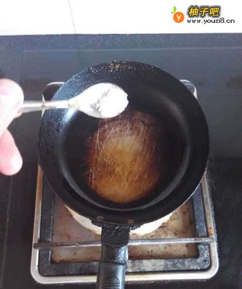 2在平底锅里倒上食用油。
