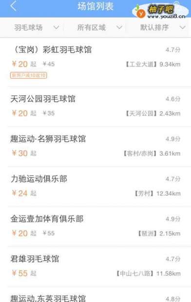 2选定场馆种类后根据筛选类型如“距离”“价格”“人气”等选出最适合您的场地,点击场馆名字查看场馆详情