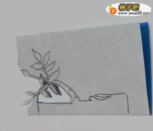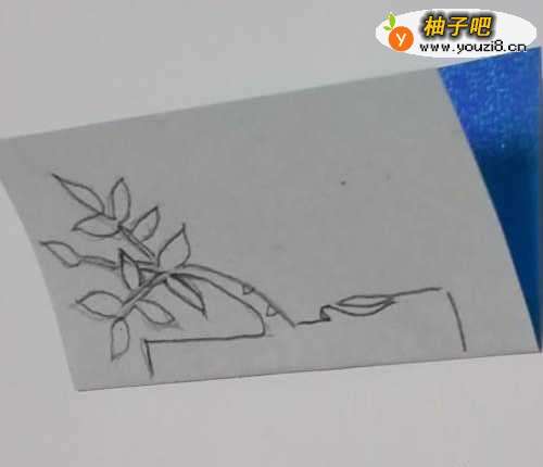3然后我们开始在长方形的纸上面画树冠,在树冠上面画上很多的叶子