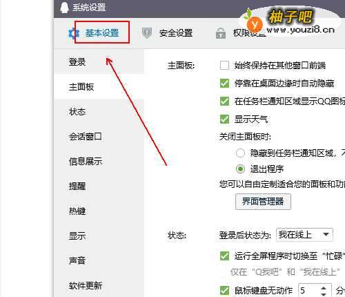 3在系统设置窗口中单击【基本设置】选项
