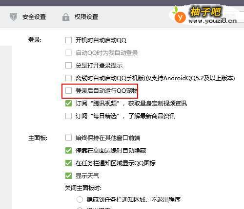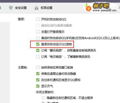 5在右侧找到【登录后自动运行QQ宠物】选项