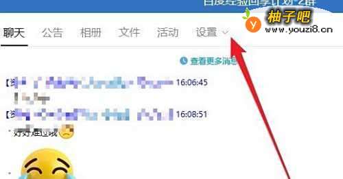 2双击打开QQ群后,可以在打开的QQ聊主界面,点击设置旁边的下拉按钮。