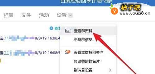 3在打开的QQ群设置下拉菜单中,我们点击“查看群资料”菜单项。