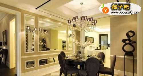 欧式装修注意事项五、欧式装修风格的灯具以黄、金等颜色为主,没必要选择一些外表闪亮华丽的水晶灯,反而外形线条柔和、光线柔和的灯都是不错的,比如说铁艺枝灯等。