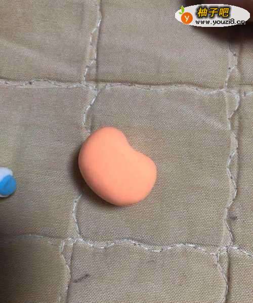 4在拿出橘色的彩泥揉成正方形粘到下面,在拿出蓝色的彩泥揉成两个长条按扁。粘到上面。在拿出粉色的彩泥揉成圆形粘到眼睛下面。
