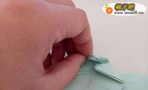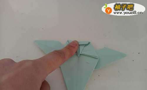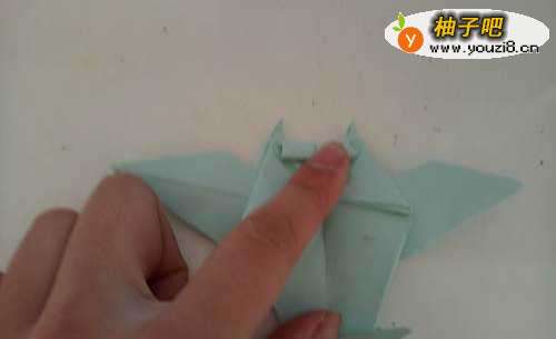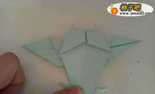 10最后我们沿着上一步出现的接合部位,直接向矿何下折过去,就可以折出猫头鹰头部的背面,效果。