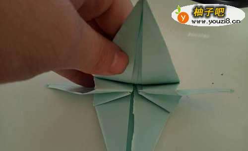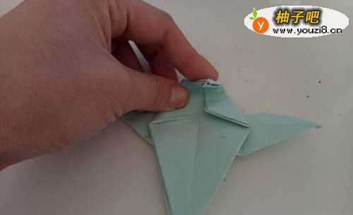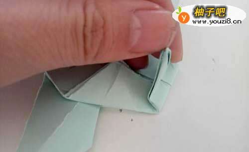 9之后将折过去的三角,在向之前方向回折一部分,效果如图所侧强示。