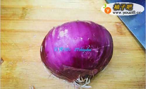 准备一个新鲜的洋葱,将洋葱洗净,然后剥离外层比较老的部分,然后将洋葱切成丝条状。