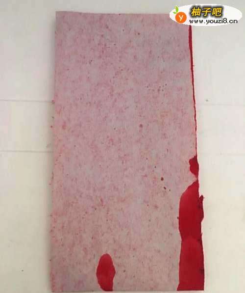 第一步 首先把一张22厘米X8厘米的长方形红色彩纸 竖起来 然后从下向上对折整齐