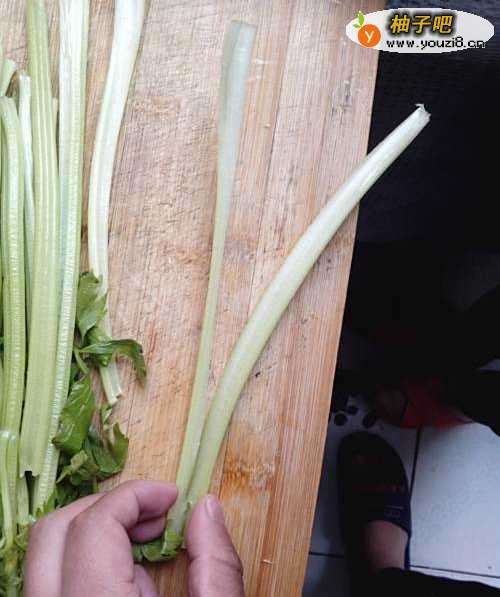 洗净。芹菜一定要买实心的,吃起来口感水脆,空心的凉拌不好吃。一个人吃2-3根即可。