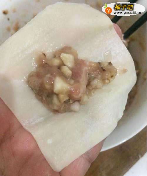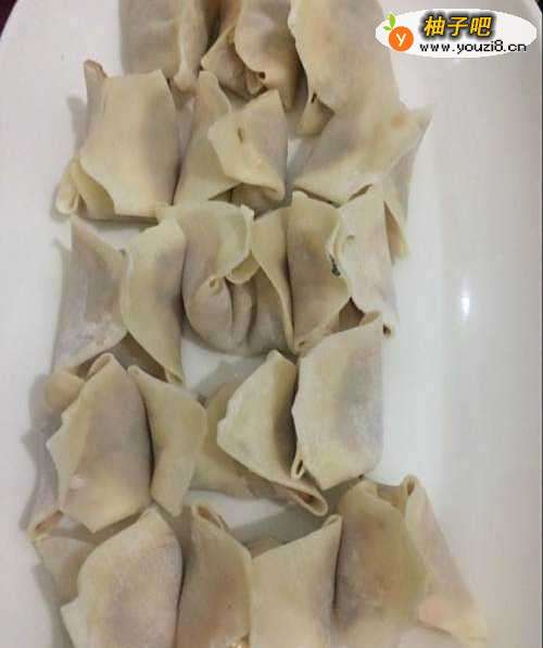 6选用新鲜的混沌皮,比较好粘贴住,如果不好粘可以抹点水来粘住。