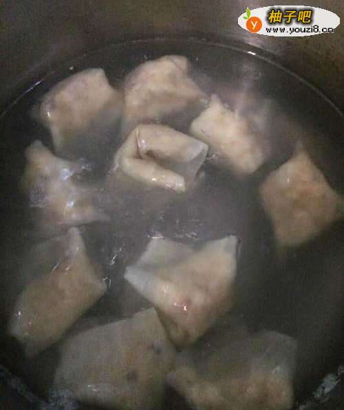 8现在可以煮给宝宝吃了。锅里放水、放点盐,水开锅后下混沌。开锅4分钟左右混沌就煮熟了。