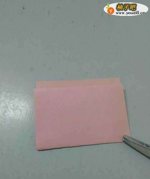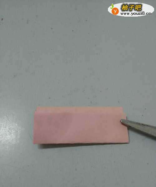 2在长方形的上边向下总付折一个一公分宽的小边。