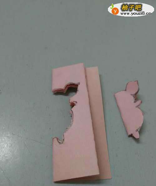 7用剪刀沿着铅笔画好的线,将半个小猪剪下来。