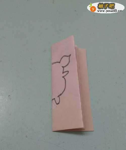 6用铅笔在彩纸相连的边上画半个小猪的轮廓。