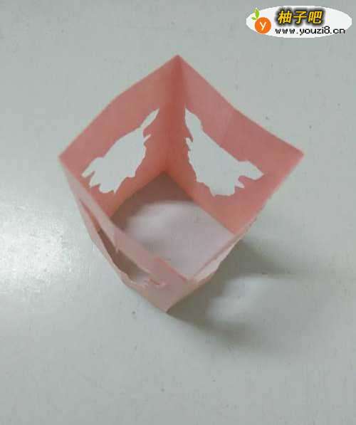 9在一公分宽的小边上抹上胶棒,将彩纸粘成一个上方是正方形的小哨眠绵灯笼。