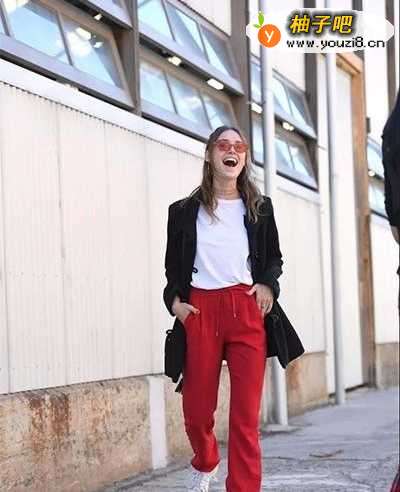 红色代表着热情喜庆,在平时生活中,不但红色上衣是种潮流,红色裤子更是一种潮流,那么对于酒红色裤子如何搭配呢?