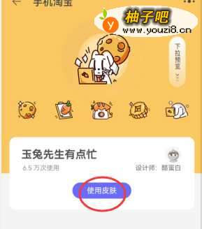 首先打开淘宝在我的页面点击右上角的设置图标,找到主题换肤点击进入,然后在页面找到自己喜欢的皮肤点击进入,最后点击使用皮肤即可。