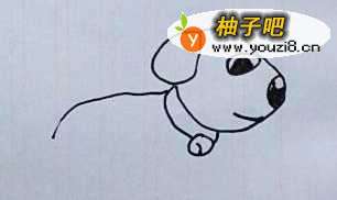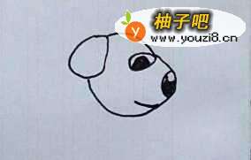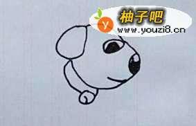 3画小狗炯炯有神的眼睛,再画鼻子和嘴巴。