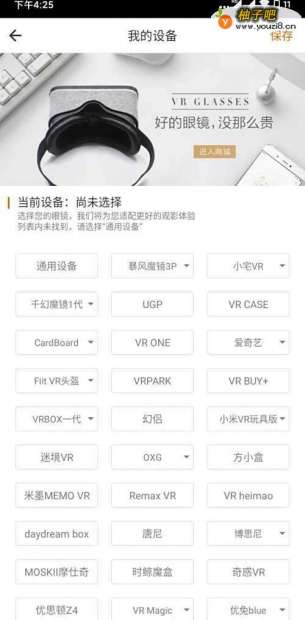 进去登陆后,进行型号选择,这个主要是根据你买的,vr眼睛来选择就是看你的眼睛牌子了,选完之后又就能进入下一步了。