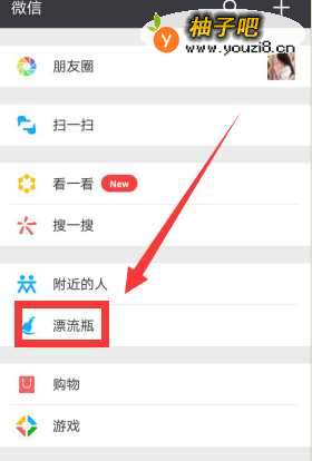 3在发现的选项下面,直接找到漂流瓶,点击进入。