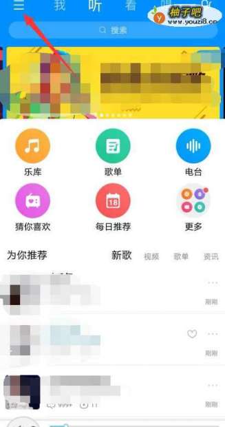 先进入应用,打开播放器,可在当前页选择某一分类,播放音乐,此时需打开设置,点击左上方图示按钮。