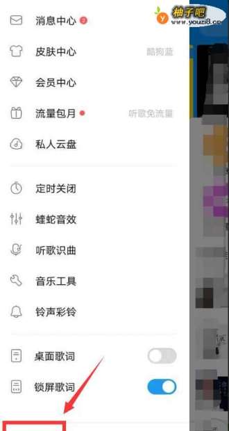 2此时可如图,看到左侧滑出的界面,其中有云盘、音乐工具等,左下方为设置按钮,点击此处,进行配置。