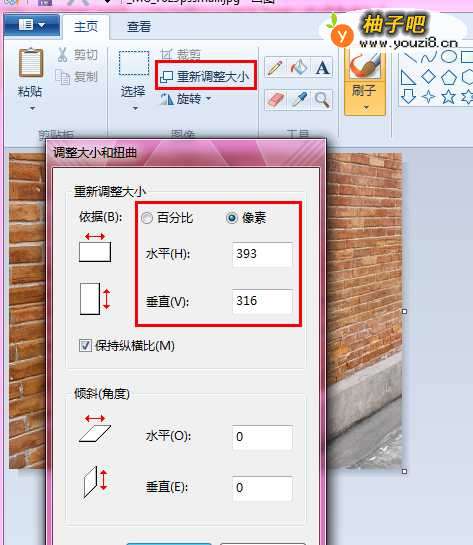3关于上存搭配图片,有个小tips,一般iphone或者单反拍的照片除了大小是比较大之外,图片分辨率也比较大,如果直接把照片上存,则页面提示为上存失败。有一个简单的方法解决,打开画图软件,选择“重新调整大小”,弹出对话框,选择“像素”,输入的数字,要看具体的图片,图片中的例子,原来照片的水平像素为3930,我把它缩小为393。其他分辨率也可以参照。