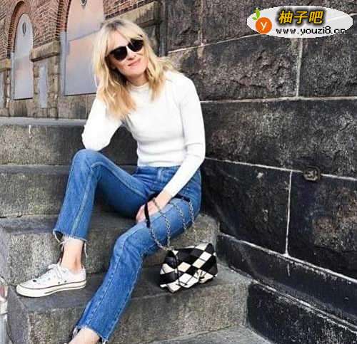搭配三:黑白拼色低帮帆布鞋+浅蓝色卷边牛仔裤+藏蓝色圆领卫衣这款黑白拼色低帮帆布鞋相比于纯色的更添个性范儿,黑白拼色低帮帆布鞋搭配浅蓝色卷边牛仔裤,上衣穿一件藏蓝色圆领卫衣,简约、轻松又很大方。