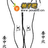 屈腿时,膝关节后侧也就是窝的方位呈现横纹,而横纹的中点处便是委中穴。在针灸的“四总穴歌”里说到“腰背委中求”,可见,委中是医治腰背病症的要穴。