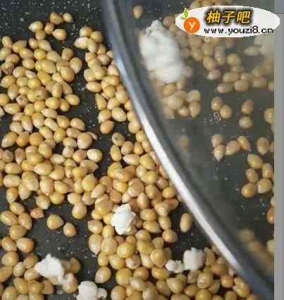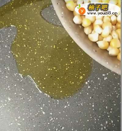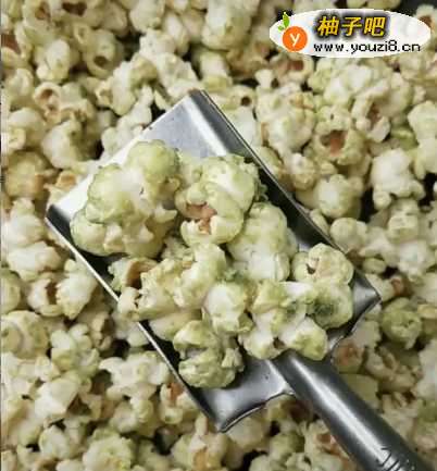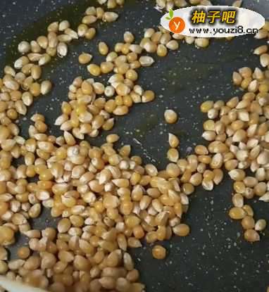 5待玉米粒全部蹦好后,倒入巧克力碎,搅拌均匀