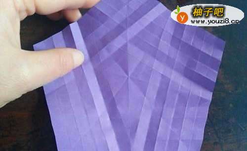 3全部折好后,如图一。(我们就是把每一条边的面来回向里折)再把边向着最外侧的折痕对折,如图三。