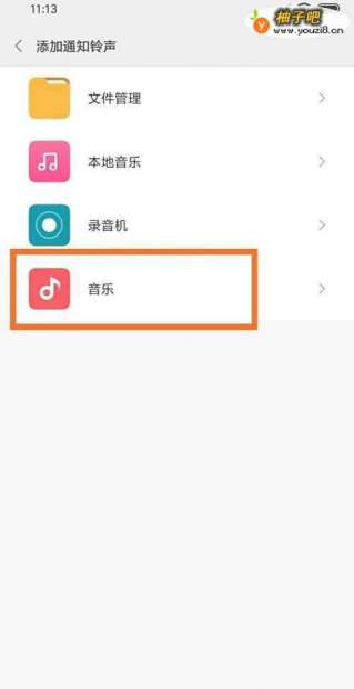 6然后找到“音乐 ”,进入后找到自己喜欢的铃声进行设置即可。