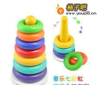2音乐七彩虹:这个玩具可以让宝宝感知颜色、大小、顺序,发出的声音、以及玩具的摇摆幅度都能很好的吸引宝宝的注意,深受宝宝喜爱。另外,单圈还可以滚动,是很好的亲子游戏。