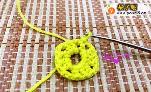 5钩3个辫子针后,到第二个洞洞里面钩2个长针1个辫子针,再3个长针,然后钩3个辫子针,第三、第四洞洞的钩法和第二个的相同。
