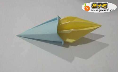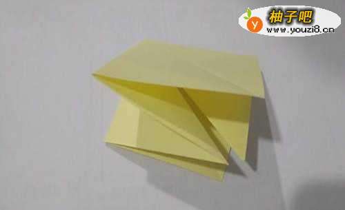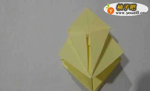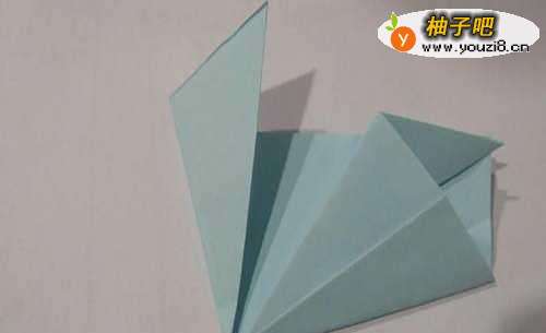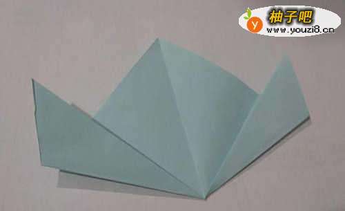 9接下来我们就需要把这两个小三角形往里折。所有带有小三角形的都要往里折成两个更小的三角形。如图所示。