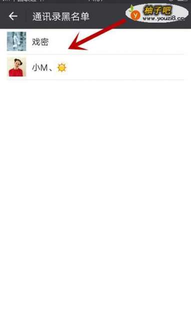 5然后就会出现黑名单联系人列表,选择你需要恢复的联系人,点击进入联系人的详细资料