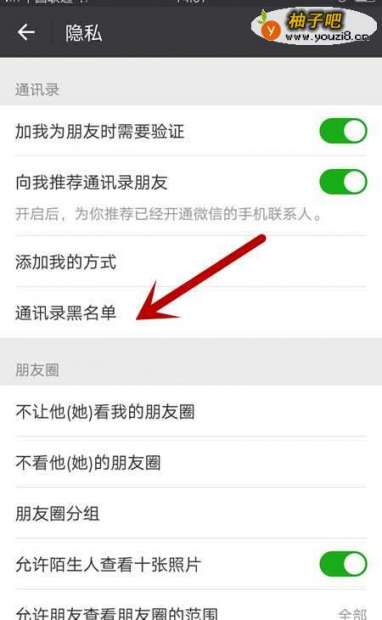 4打开”通讯录黑名单“