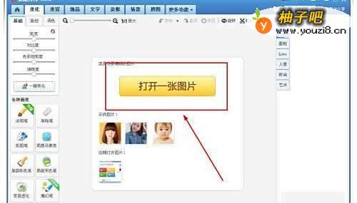 2点击“打开一张图片”,在弹出的打开对话框中,选择打开你要添加背景的照片。