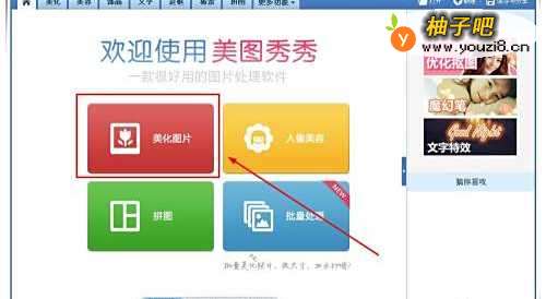 打开美图秀秀软件,在主窗口中,点击“美化图片”。