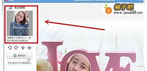 5如果照片显示的不是很完整,则可以在左侧的“场景调整”区,对场购狠景中显示的内容进行拖动调整,直到你满意为至。