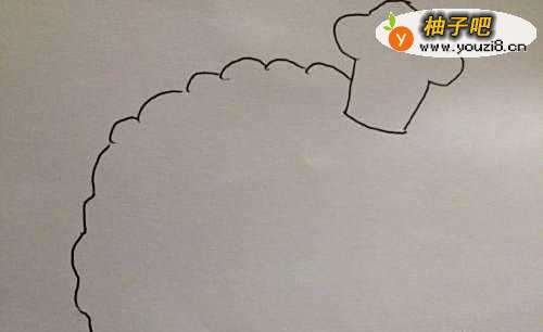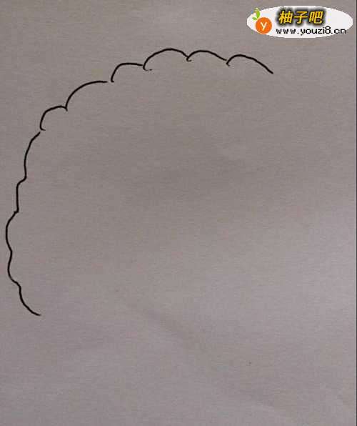 我们准备好画喜羊羊的笔和纸,先画出一条弯曲的波浪线。