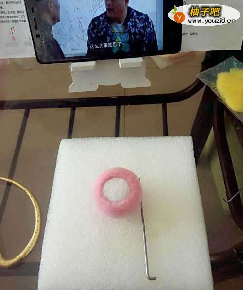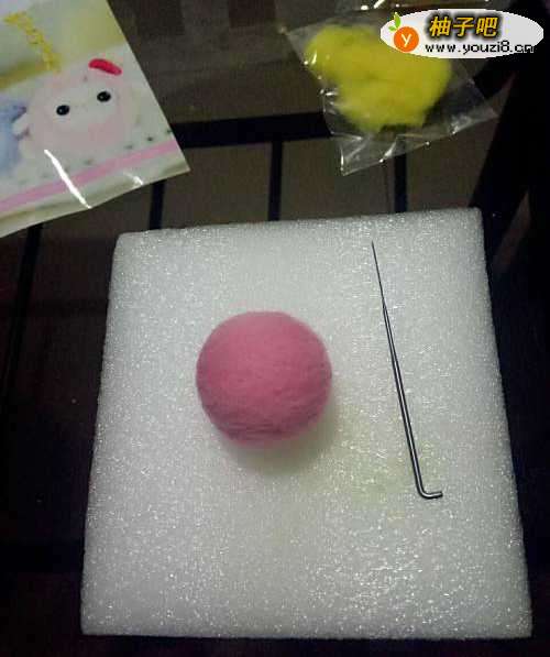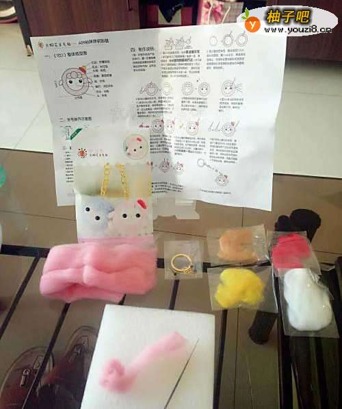 粉色羊毛毡,白色羊毛毡,玫红色羊毛毡,柠檬黄羊毛毡,泡沫垫,钳子,挂圈,戳针