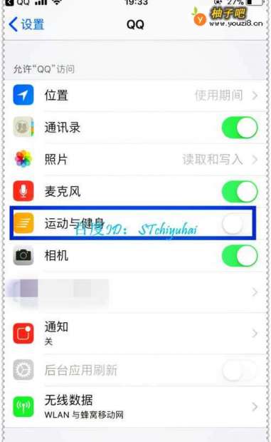 4在手机设置界面,将允许QQ访问“运动与健身”,这样一些数据能够从手机导入QQ。