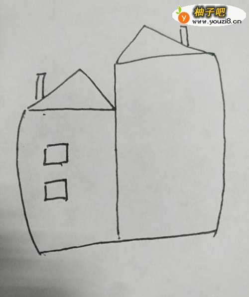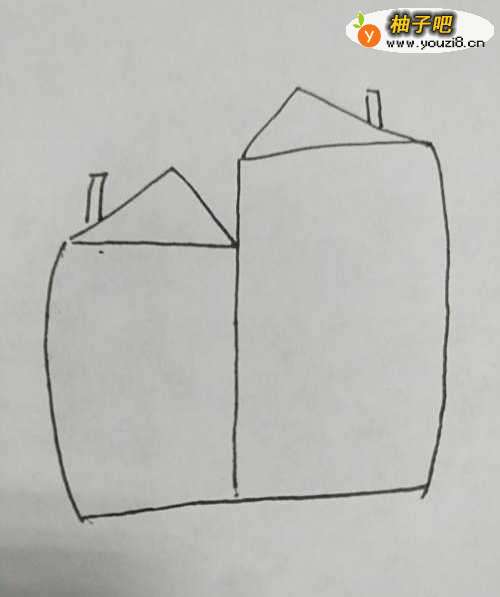 3第三步,接着在三角形房顶上画出两个烟冲。
