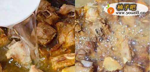 4翻炒出香味之后,放入两大碗开水,小火慢炖20分钟,再中火收汁至酱汁粘稠。