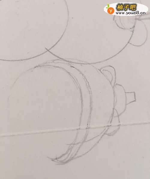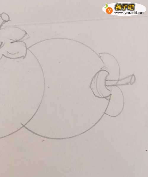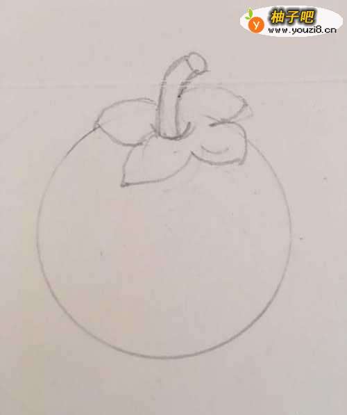 4第四步 再画上组图的第三部分 就是半个山竹 还有它的枝梗